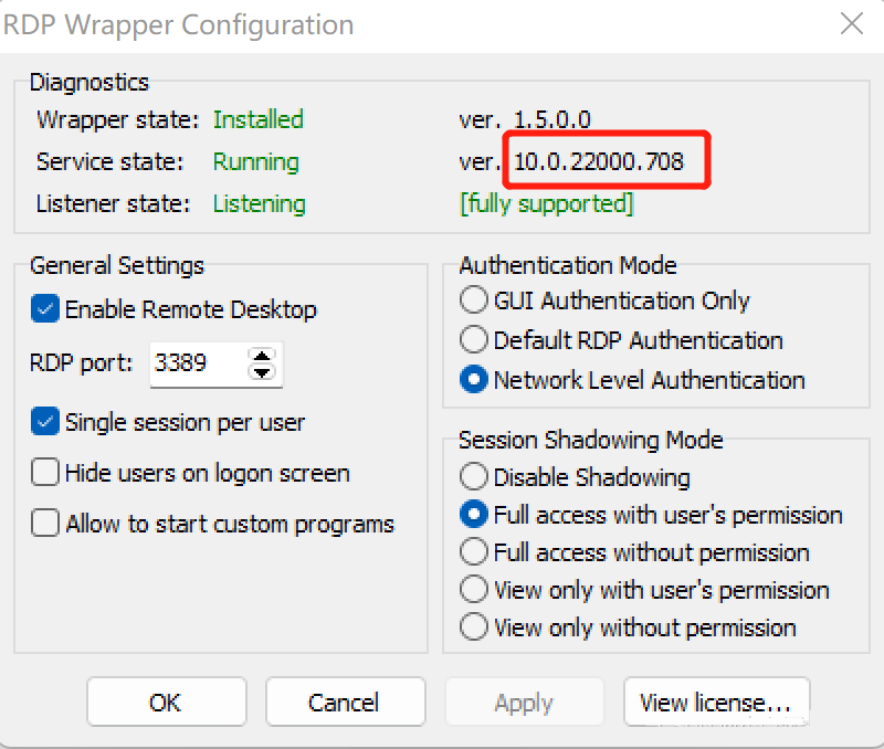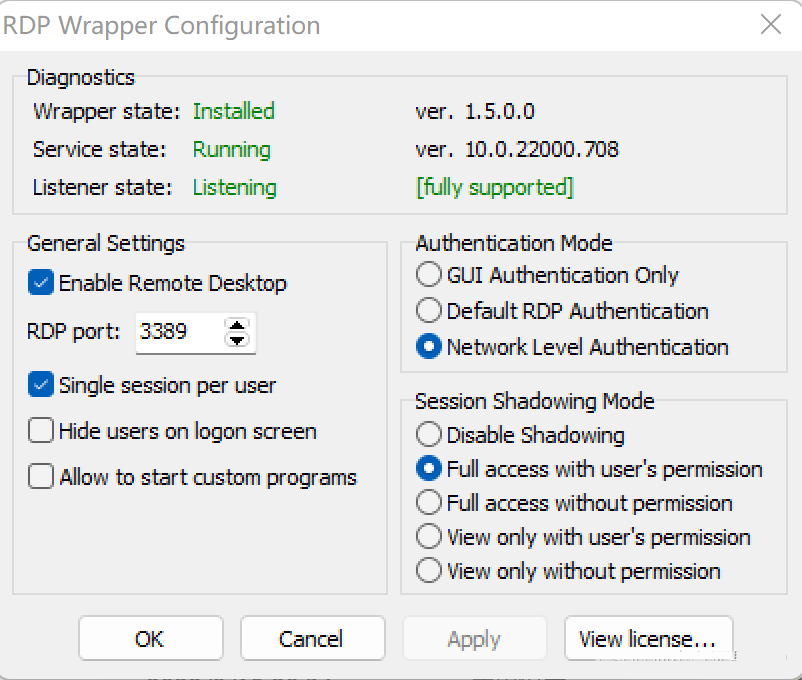 1、双击RDPConf.exe,如果出现如下界面,说明配置成功,试试连接远程桌面。