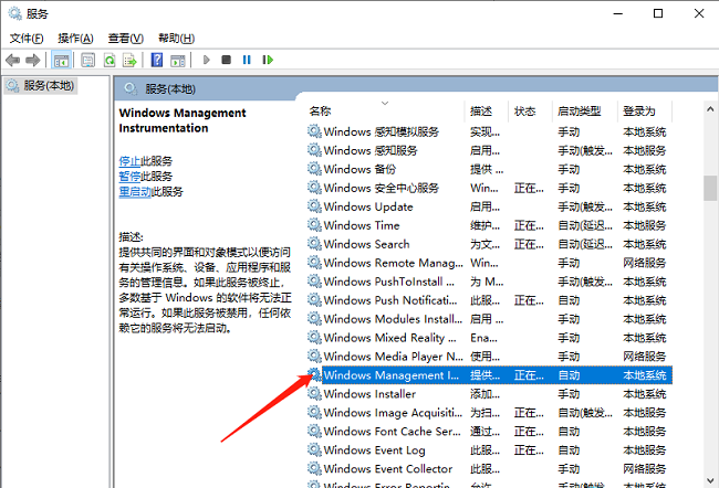 2、进入到新的窗口界面后,找到“Windows Management Instrumentation”双击打开。