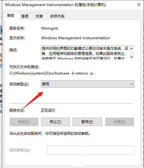 3、在打开的窗口界面中,点击“启动类型”选项框的下拉按钮,将其更改为“禁用”,然后点击“确定”保存。