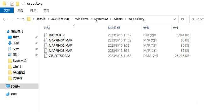 4、最后进入到“此电脑”中,依次点击“C: Windows System32 WBEM Repository”,并将该文件夹中的所有文件都删除就可以了。