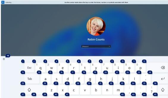 触摸键盘上带有数字标签,可使用语音输入密码。