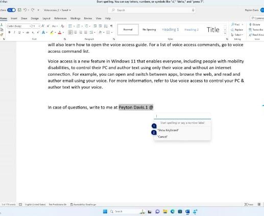 我们添加了两种新体验,通过语音访问轻松进行文本创作。用户现在可以使用“纠正”命令来纠正语音访问误识别的单词。
