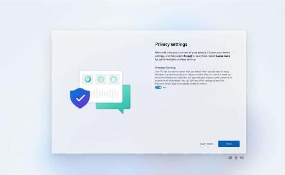 接近唤醒、离开锁定、自适应调光均由 Windows 中的存在感应提供支持,现在可以在为设备选择隐私设置时通过 OOBE ( “开箱即用体验”)设置过程启用。在设置具有兼容传感器的新设备时,这将提供对存在感测功能和应用程序对存在信息的更多控制。