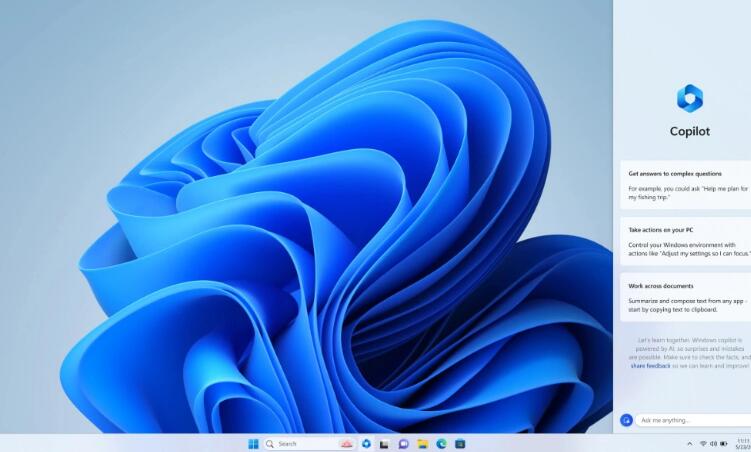 Windows Copilot 将显示为停靠在右侧的侧栏,不会与桌面内容重叠,并且将在打开的应用程序窗口旁边无障碍运行,让您可以随时与 Windows Copilot 进行交互。