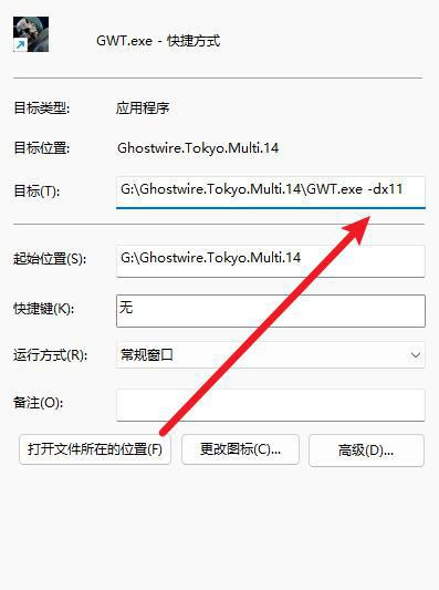 3、添加-dx11后重新运行快捷方式即可完成任务。