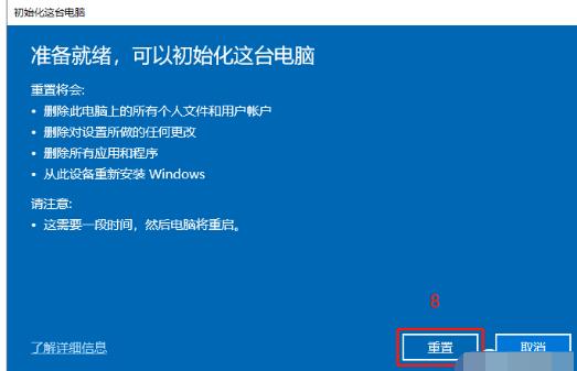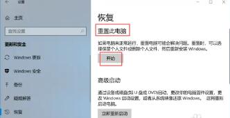 4、我们可以看到重置此电脑,这个其实就是还原系统,我们点击开始。