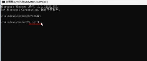 4、最后输入【logoff】命令,并且按【Enter(回车键)】,即可跳过联网登录账号提示。