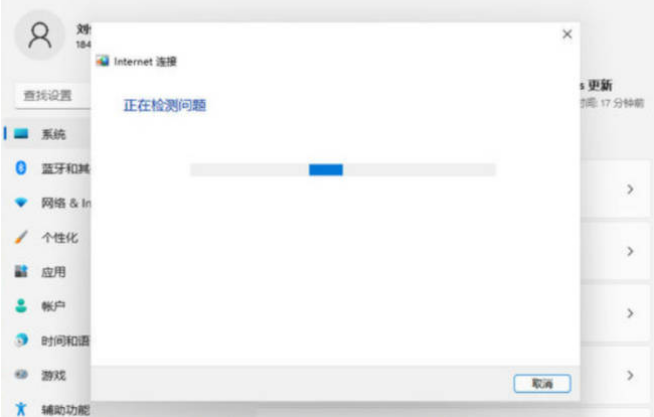 3、让系统检查网络,检测完毕后点击网络连接进行自动修复就可以了。