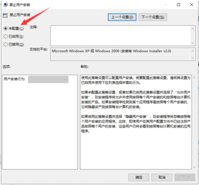 3、进入到属性界面后,如果是已启用,就将其改为未配置或者已禁用,点击确定即可。