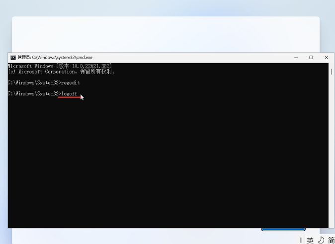 4,最后输入【logoff】命令,并且按【Enter(回车键)】,即可跳过联网登录账号提示,如下图所示。