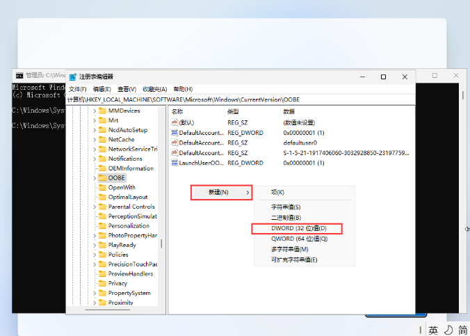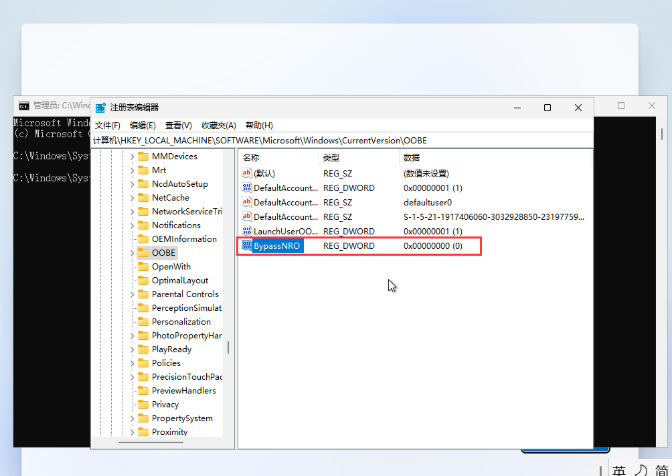 华硕win11跳过联网方法二:通过修改注册表方法解决