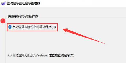 4、将验证程序改为自动选择未经签名的驱动程序按钮,点击下一步进行检测即可。