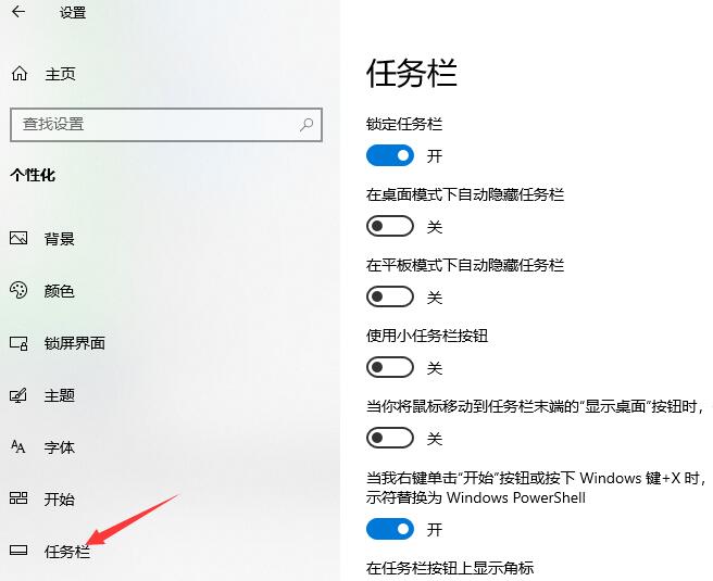 3、在个性化界面里,选择“任务栏”,跳转到任务栏界面。