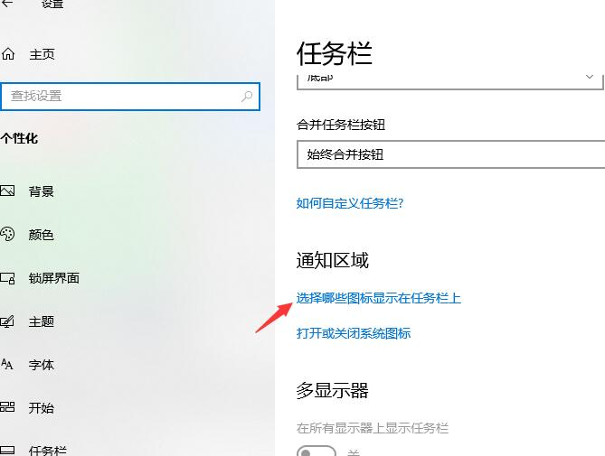 4、接下来,在任务栏界面里点击“选择哪些图标显示在任务栏上”。