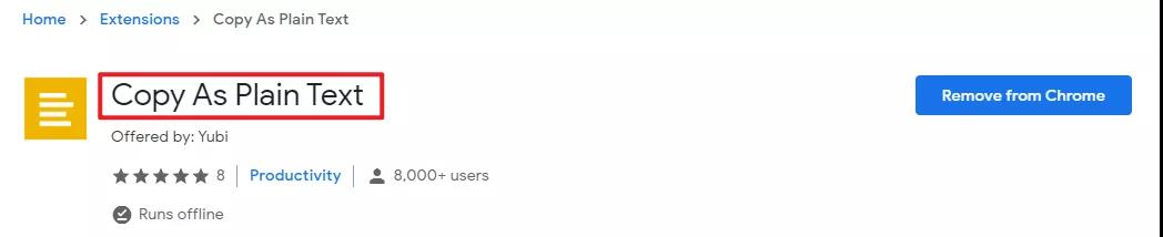 在 Chrome 浏览器扩展程序中,打开 Chrome 网上应用店,搜索 Copy As Plain Text,然后添加至 Chrome。