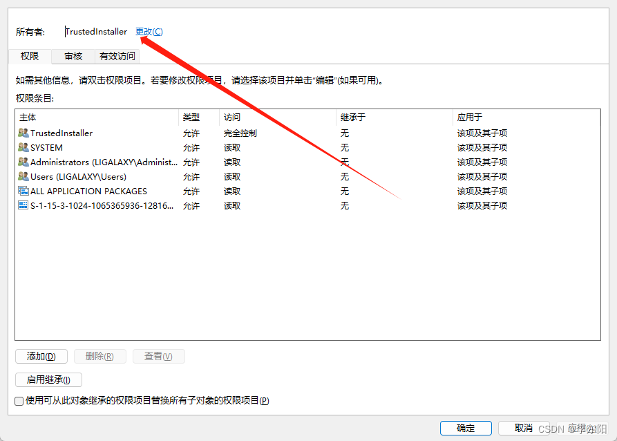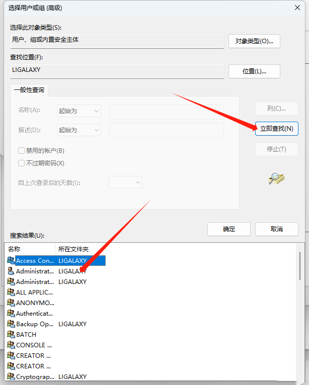 3、更改所有者 - 选择高级-立即查找-选择Administrator(图标是一个小人的就是你的用户)。