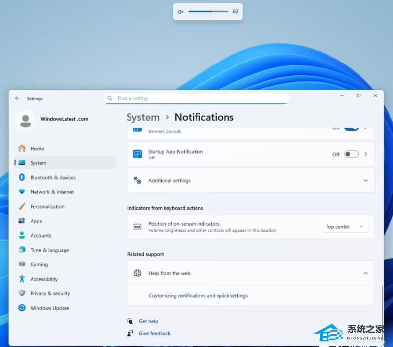 微软提升了个性化体验,用户现在可以通过“设置 > 系统 > 通知”中的新开关,自由地将这些指示器设置在屏幕的左上角、顶部中央或默认的底部中央三个位置。