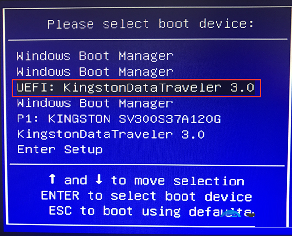 6、在快速引导菜单中选择有带uefi字样的选项,点击进入PE界面。