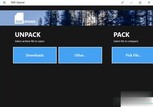 5、可以看到,RAR Opener 的主界面分为 Unpack(解压)和 PACK(压缩)两个部分。