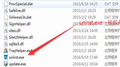 4、点击进入后,将文件夹放到最下面的部分,找到底部的程序:uninst.exe双击该程序,它会自动弹出卸载弹出窗口。