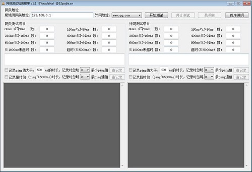 网络波动检测程序是款网络检测工具,网络波动检测程序官方版可以同时检查网关和外网,检查网关,判断路由器是否拥堵,网络波动检测工具也能够检查外网是判断是否ISP不稳定或者网内有大流量的访问!