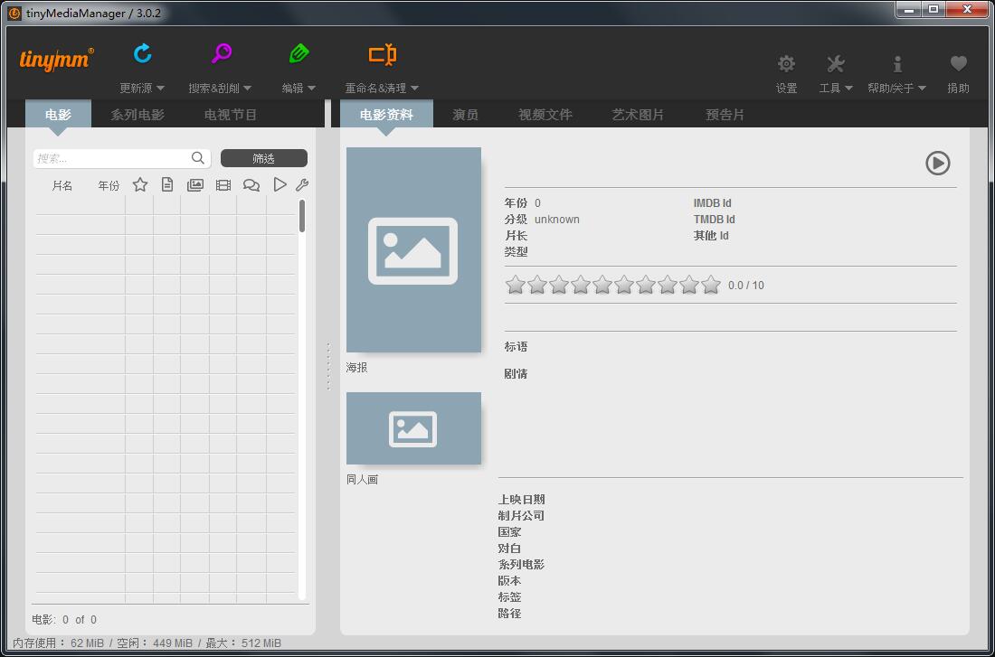 4、tinyMediaManager是仅有500多KB大小的媒体文件管理软件,你可以用它获得来自不同网站电影的所有相关元数据;