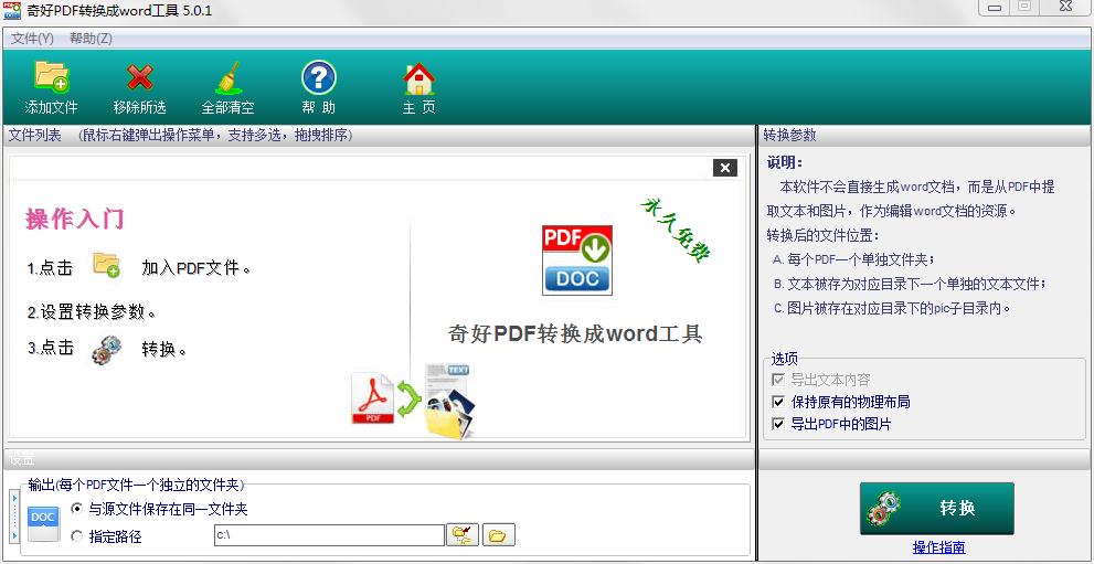 奇好PDF转换成word工具是一款可以帮助提取PDF文档中的图片、文本素材,供编辑word文档使用的软件,用户使用可以方便地撰写文档,还支持批量PDF文档转换,体积小,运行速度快,独立运行,无需其他支持。