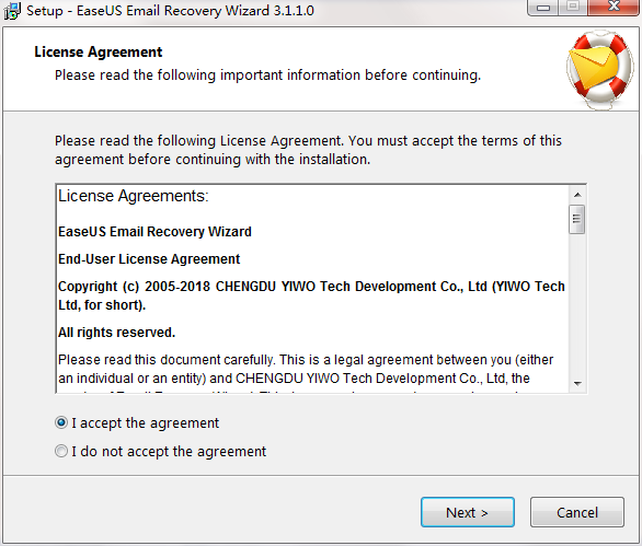 解压后,双击EXE文件,查看许可协议,选择i accept.,点击next。
