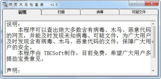 网页木马检查器可以轻松查出绝大多数含有病毒、木马、恶意代码的网页,并能及时发现未知病毒、可疑文件,为广大用户及时发现含有病毒、木马、恶意代码的文件,保障广大用户的安全。