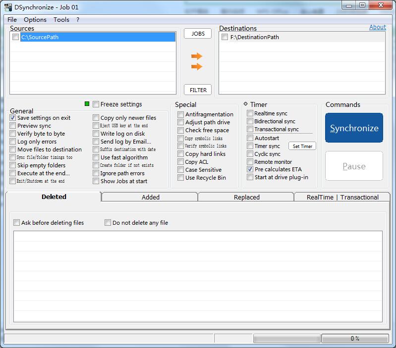 轻巧实用,可以让用户在主窗口排除单个文件或文件夹,支持普通同步和定时同步,备份以前版本的替换文件。能够实现对硬盘,软盘,LAN,USB密钥,CD-DVD和ftp服务器上的两个或多个文件夹定期同步完善的流程控制,节省时间和精力,提高公司运行效率。