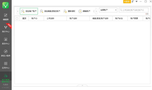 首次登陆小鹿点睛助手后,会首先进入账户管理模块,需要添加绑定360推广账户,点击添加按钮,弹出添加账户面板,输入正确的账号和密码即可完成绑定。小鹿点睛助手支持多账户同步管理,具体可绑定的账户数量不一。除了添加账户功能外,还可以刷新账户信息,授权过期重新登录。以及删除推广账户。