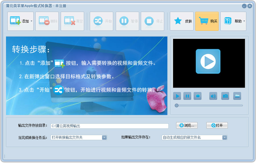 蒲公英苹果Apple格式转换器是一款非常方便的视频转换软件,这款软件支持各种常用视频格式,并且可以将这些视频格式的视频转换成ipad、iPhone等各种苹果公司的产品所支持的格式,这样一来你就可以用苹果的设备观看视频了。