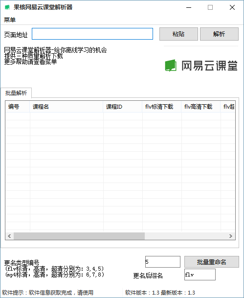 网易云课堂解析器是一款专为网易云课堂用户准备的解析统计,网易云课堂解析器功能强大,能够帮助用户对网易云课堂课程地址进行免费解析,用户可以使用本软件轻松获取网易云课堂课程的真实下载地址,有一键导出下载地址,方便迅雷等高速下载!有需要的朋友快来下载试试吧!