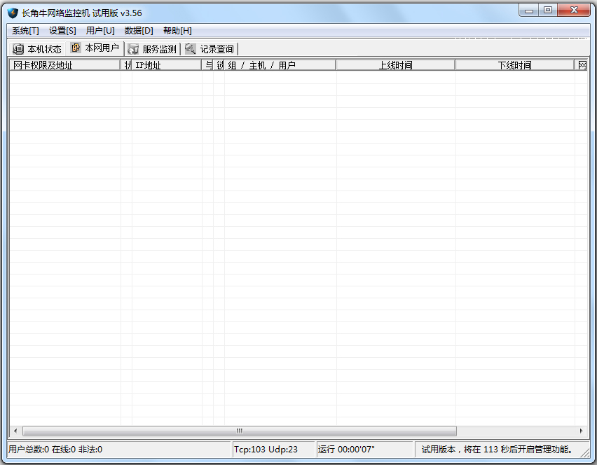 长角牛网络监控机是专业的局域网监控管理软件,它可以通过一台连接局域网的电脑就可以穿透各用户防火墙,监控整个网络的连接情况,它可以检测出网内所有的代理服务器或路由器,防止用户私自扩展网络,可以保护指定主机,防止被木马、病毒或恶意程序施行arp欺骗,保护局域网中各用户的网络安全及畅通。