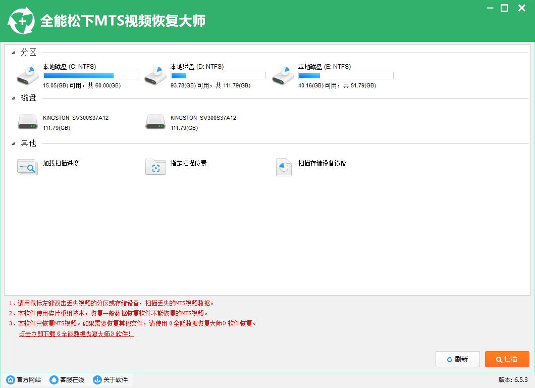 专业恢复索尼单反/微单相机、摄像机拍摄的MTS格式的影像视频,完美支持目前索尼相机所有型号。普通数据恢复软件恢复出来的是不能播放的,全能索尼MTS视频恢复软件拥有碎片重组技术,让视频恢复更完美,原始画质、音像同步、完美编辑。同时也支持照片恢复功能哦!完美兼容全线Windows系统;急速扫描,快速数据恢复与深度数据恢复相结合。