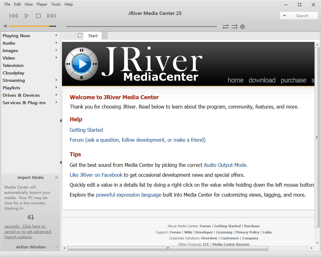 J.River Media Center为你的数字声音所整合的最强软件。你可以用它来播放各种声音文件,并控管所有PC上面的音乐来源。你可以靠用以群组的方式来管理你的文件,以演唱者、专辑、播放列表或是种类来分组。总之,有了这个软件后, 你可以把”CD 播放器、MP3 播放器、MP3 制作器、CD 制作器、CD 刻录器”等等统统代替。J.River Media Center可以播放Mp3、MusicEx、WAV、OGG、RealAudio、RealVideo、AVI、QuickTime和其它格式的文件,还能把CD品质的音乐编码成MP3或是Windows Media Audio格式。