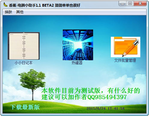 香蕉电脑小助手是一款可以记录一些事情的其他类应用软件。添加了日记本、热键器、文件管理三个功能。