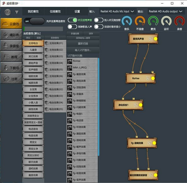 超级音效是一款非常好用的音效变声软件,支持对声音进行编辑,用户可以任意DIY声音效果,还可以变声,男变女,卡通人物声音,变各种声音,很多用户在玩游戏的时候就可以使用软件进行变声和队友、敌方交流。超级音效还可以用来直播K歌哦。