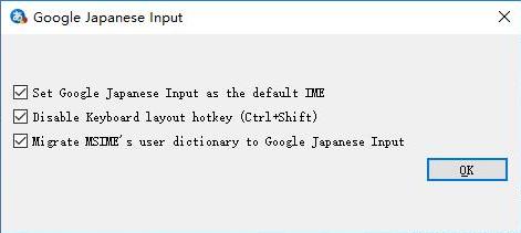 2、点击“OK”,谷歌日语输入法安装即刻完成。