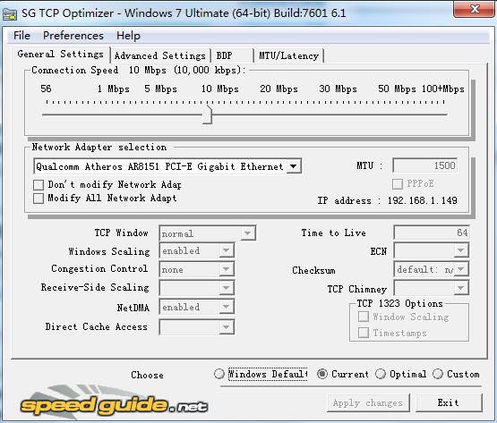 SG TCP Optimizer是一款小巧、强大、绿色的网络优化程序,操作界面简单,能有效的优化网络速度。使你的宽带更顺畅,一个完全免费的网络参数调节软件。