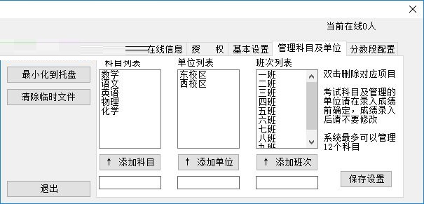 考试科目及管理的单位请在录入成绩前确定,成绩录入后请不要修改系统最多可以管理12个科目。