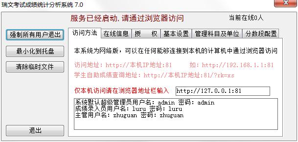 并且考试成绩统计分析系统可以记录当前访问的人数。