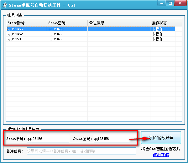 二、点击到自己输入的账号密码,填写备注信息,避免忘记账号。