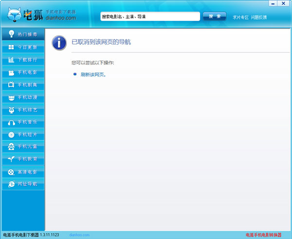 电狐手机电影下载器是一款专业的3GP MP4手机电影下载工具。海量的电影、电视剧、动漫、综艺、音乐、视频短片极速下载;下载手机电影、视频就用电狐!