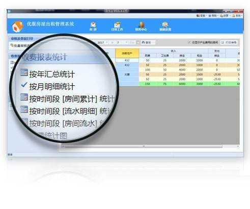 5、财务报表统计,清楚知道每一笔收费的情况。