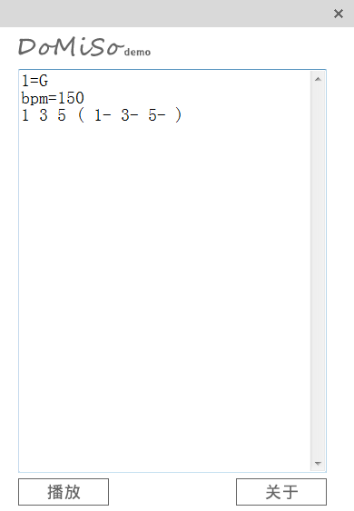 DoMiSo是一个轻量级的简谱解释器,它能够将格式化的简谱转换成midi音乐并播放出来。DoMiSo的简谱格式包含控制命令与音符标记。其中控制命令包括调性控制,速度控制和回滚控制。