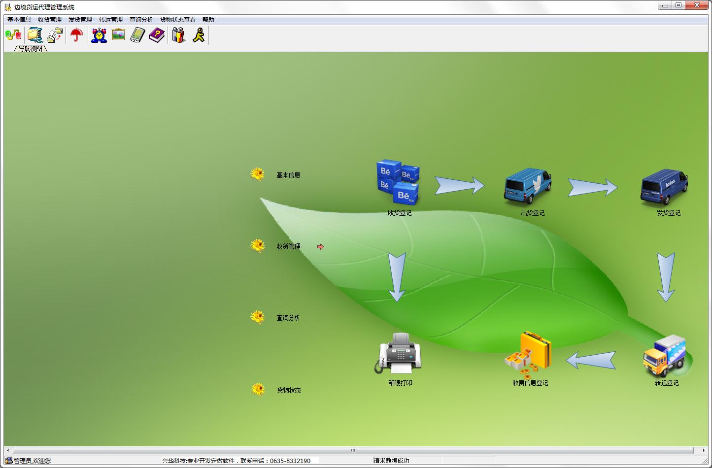 边境货运代理管理系统是一款简单便捷的货运管理软件,集收货、仓库、发货、转运、统计分析、货物状态查询等各种处理功能为一体,可以通过系统的管理树导航进行管理,信息分类全面,树形管理方便,操作快捷简单。