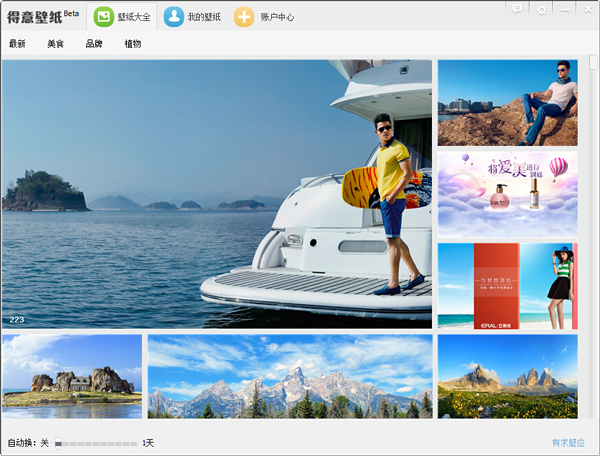 得意壁纸是款多智能设备屏幕背景壁纸软件,均可全屏展示图文信息,内容丰富多样,自动切换自定义设置桌面壁纸,让你随心所欲想换就换。