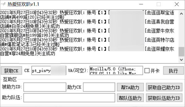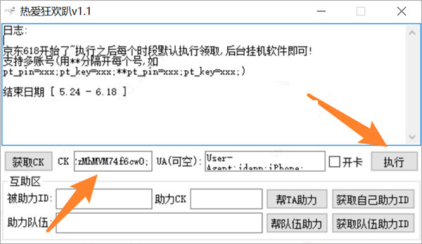 4、完成后会提示已获取CK值,接着将信息粘贴到对应位置,并点击“执行”,它就开始全自动完成任务;