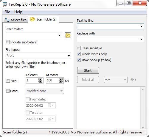 TexRep是一款实用的文本替换软件,可以同时在数个文本文件中替换你指定的字符,或者对指定目录下(可包含子目录)的全部文本文件中的指定字符进行替换,还可以保留备份,免除替换出错的危险,支持txt,ini,html,shtml,asp,php等格式,对中文字符支持很好。